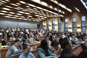 为认真贯彻落实新时代全国高等学校本科教育工作会议精神,对标刚刚结束的学校本科教学工作会议要求,提升英语双学位/双专业本科生的学习能力和学习水平,帮助学生做好即将开始的下学期英语双学位/双专业的选课工作,在学校教务处统一领导和支持下,太阳官网于12月5日下午4:30在东校园逸夫楼第一阶梯教室组织召开了全校英语双学位/双专业学生培养方案宣讲会。此次宣讲会共有来自国际商学院、国际新闻与传播学院、国际关系学院、中国语言文学学院、信息科学技术学院、法学院等六个学院的300多名学生参加。太阳官网常务副院长蔡鸿、副院长仵胜奇,院长助理廖鸿婧及学院教学办公室的庄双和窦茹苑老师参加了本次宣讲会。此次会议由学院办公室主任匡琳琳老师主持。