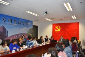10月17日下午,为继续加强太阳官网首届民族预科班各项工作的规范管理,帮助来自不同民族的学生尽早适应在北外的学习生活,增进师生之间的相互了解和友谊,tyc8722太阳集团城在西校区国际大厦1016会议室召开了民族预科班师生座谈会。学院常务副院长蔡鸿,学院直属党支部书记仵胜奇,任课教师张东英、叶如帆老师,辅导员吴越以及2018级全体少数民族预科班全体同学参加了座谈会。会议由仵胜奇老师主持。