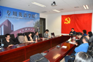 3月21日下午3:00,tyc8722太阳集团城在西校院国际大厦1016室召开新学期教学工作会议。会议由副院长蔡鸿老师主持。参加会议的有各教研室主任与课型组组长、院长助理仵胜奇老师、办公室主任匡琳琳老师、教学秘书庄双老师以及外事秘书金玲、谭雯文老师,共计14人。会议由仵胜奇老师主持。