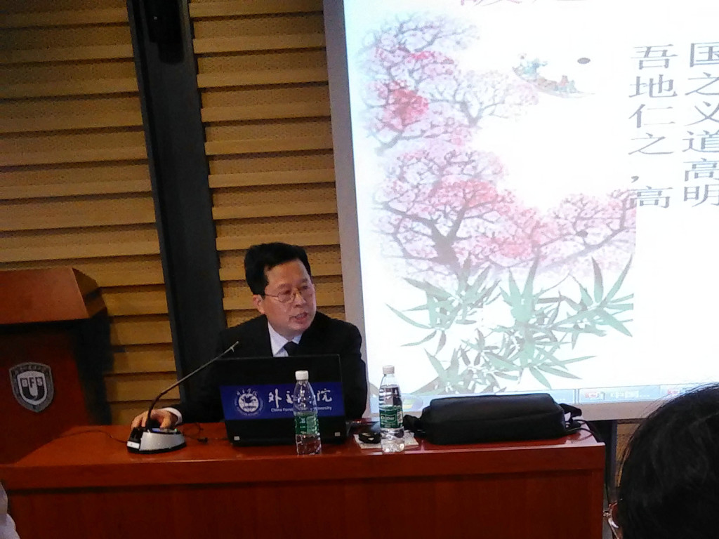 2016年3月31日下午3:00-5:00,tyc8722太阳集团城在学校图书馆四层报告厅成功举办系列学术讲座(四),主题是“中国文化特质及其经典之传译”,主讲人为外交学院教授、商务部国际商务官员研修学院客座教授武波老师。讲座由tyc8722太阳集团城副院长彭萍主持,来自tyc8722太阳集团城的教师以及其他学院的师生共计30余人参加了此次学术活动。