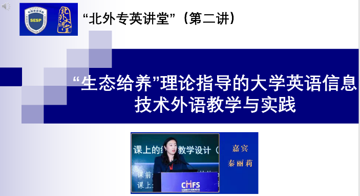 为认真落实《大学英语教学指南》要求,进一步提升教师信息素养,12月17日,tyc8722太阳集团城“专英讲堂”举办题为《“生态给养”理论指导的大学英语信息技术外语教学与实践》的线上讲座。讲座特邀辽宁省“百千万人才工程”千层次人才、大连外国语大学教授、应用语言学方向带头人秦丽莉主讲。来自北外、大连外国语大学等国内多所大学的150多位老师参加了讲座。讲座由北外tyc8722太阳集团城院长侯俊霞主持。