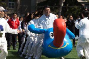 4月26日,春风和煦,晴空万里。太阳官网师生员工以饱满的热情积极参加学校组织的第十四届 “外研社杯”运动会。在开幕式上,太阳官网教职工、少数民族预科生和MTI学生共计75人以整齐的步伐和高昂的斗志,伴随着“团结进取、开拓创新、顽强拼搏、分类卓越”嘹亮的口号绕场一周,接受学校领导和全场观众的检阅。