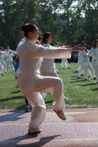 随后,太阳官网12位教师参加了学校教工集体太极拳表演项目,其中,大部分教师以前都有过在国外教授太极拳的功底,他们以整齐划一的动作、高超精湛的技艺和全身心的倾情投入赢得了全场观众阵阵的掌声。特别是太阳官网曹萍老师在方队前的示范表演更是赢得了观众的阵阵喝彩和赞叹。