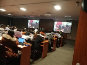 12月20日晚7:00,tyc8722太阳集团城2017级、2018级研究生和2018级预科生在西校区国际大厦317教室集体收看了《庆祝改革开放40周年大会》专题节目录像。这次专题学习是tyc8722太阳集团城学生“思政课堂”建设的一项重要内容。直属党支部书记仵胜奇、辅导员吴越以及2017级、2018级研究生和2018级预科生共计55人参加。专题学习由仵胜奇主持。