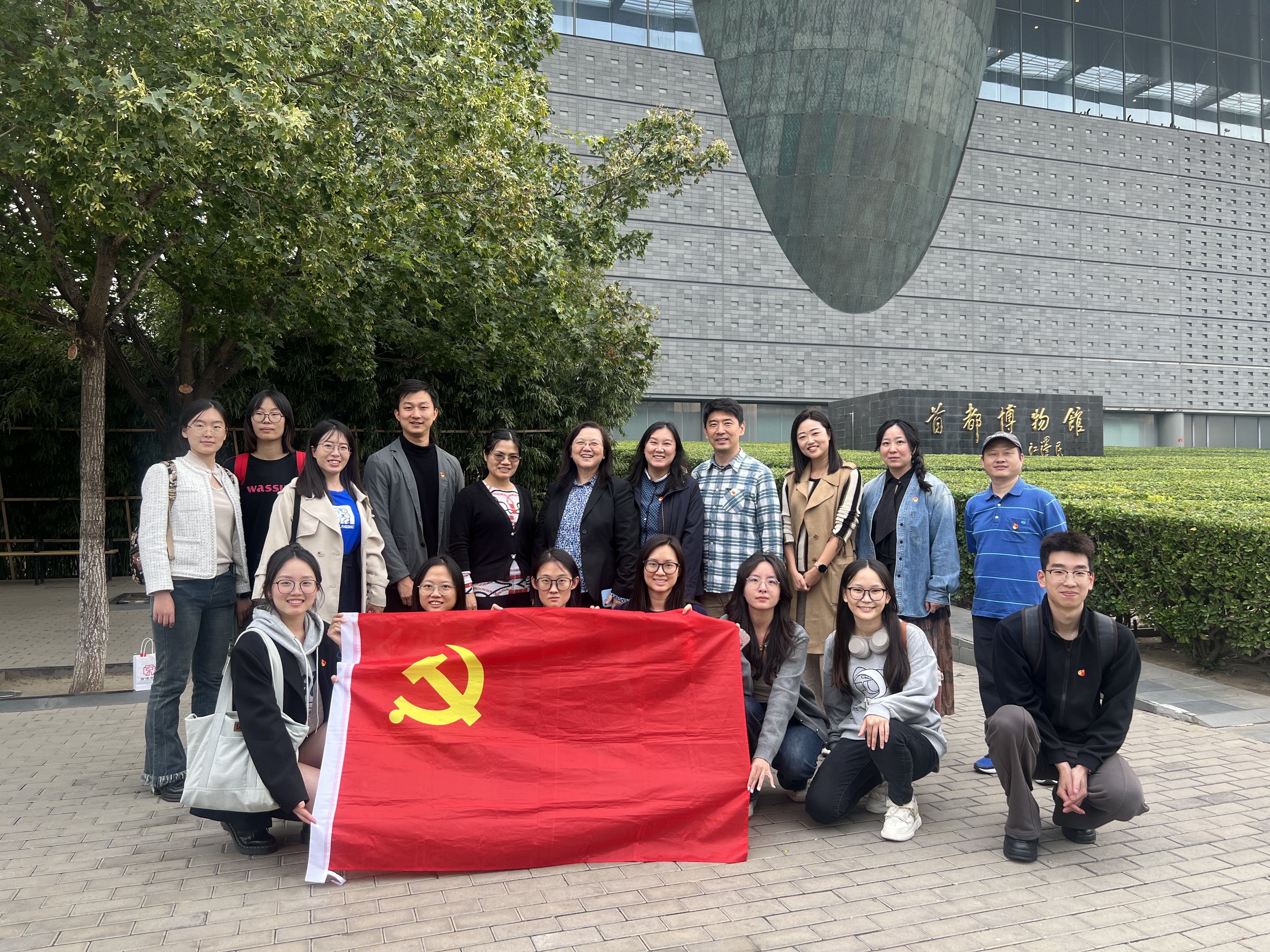 为深入学习贯彻党的二十届三中全会精神,厚植家国情怀,增强文化自信,进一步做好基层党建工作,10月9日,tyc8722太阳集团城第一党支部邀请教务处教材处招办党支部书记李莉文教授和学院师生党支部的全体师生党员赴首都博物馆联合开展主题为“中轴文心”的党日活动。