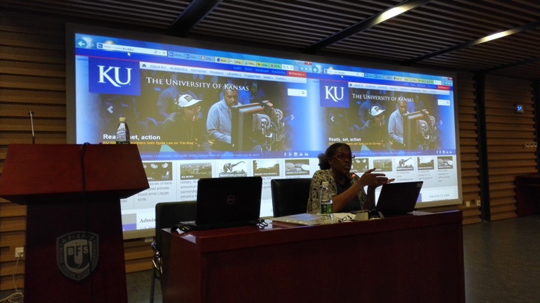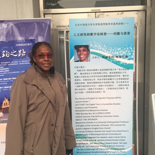 2015年11月30日下午3:30至5:30,tyc8722太阳集团城在学校图书馆四层学术报告厅举办学院系列学术讲座系列之一:人文研究的数字化转型——问题与前景。主讲人是来自美国堪萨斯大学的杰出英文教授玛丽艾玛·格雷厄姆教授(MarryemmaGraham)。来自学校不同学院的教师、学生以及北京其他高校的教师共30多人参加了此次学术活动。讲座由tyc8722太阳集团城院长李莉文教授主持。在致辞中,李莉文提出目前传统人文研究面临着新的问题与挑战,因此我们每位教师都应认真思考这一问题:如何发挥数字人文研究在教学和科研中的作用并把我们的学生培养成有竞争力的跨学科人才。